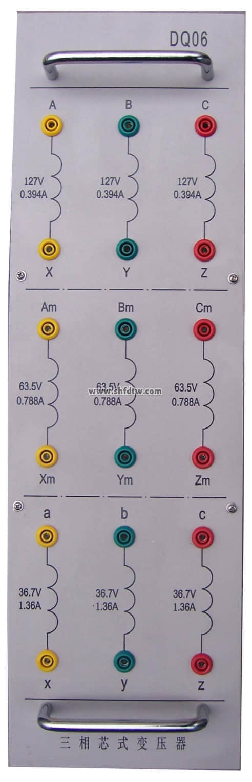 4、DQ05三相組式變壓器(三只相同的單相變壓器組成,原邊220V/0.35A,副邊55V/1.4A)