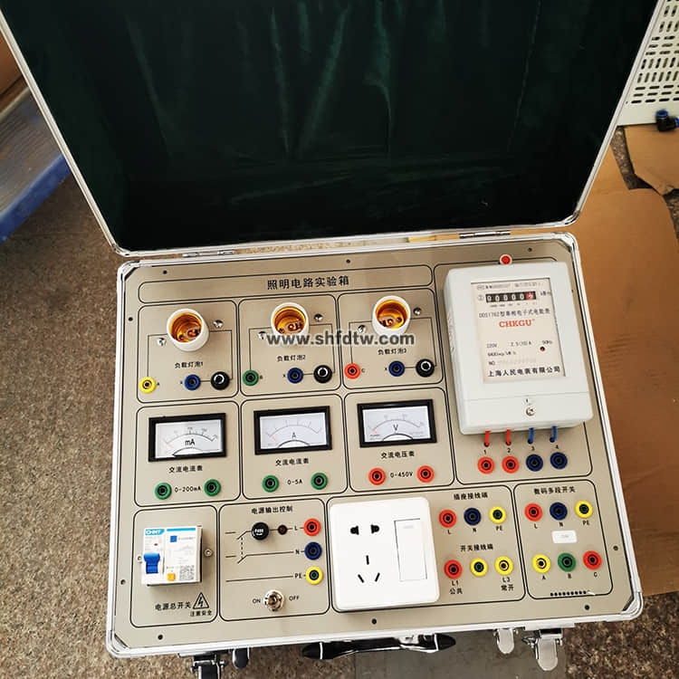 TW-X89型照明電路實(shí)驗(yàn)箱主要是進(jìn)行“電工學(xué)”中的照明電路部分實(shí)驗(yàn),全部采用國(guó)家標(biāo)準(zhǔn)的安全插座和安全實(shí)驗(yàn)導(dǎo)線, 連線方便,接觸可靠,而且壽命長(zhǎng)、效率高,有效預(yù)防觸電隱患。實(shí)驗(yàn)面板上印有元件符號(hào)及主要參數(shù)便于學(xué)生識(shí)別。實(shí)驗(yàn)箱結(jié)構(gòu)緊湊實(shí)用直觀,安全可靠,能有效培養(yǎng)學(xué)生的動(dòng)手能力,維修方便、簡(jiǎn)捷??蓾M足各類高、中等院校及職業(yè)技術(shù)類院校開(kāi)設(shè)的電工典型實(shí)驗(yàn)。