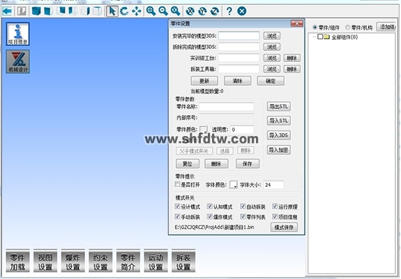 2.開放型設置:可對項目模型零件進行命名、顏色更改、視圖設置、爆炸設置、約束設置、零件簡介設置、運動設置、拆裝設置。