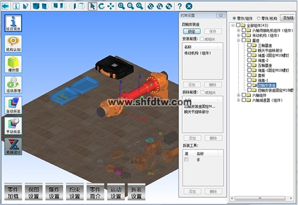 ▲6.約束設置:軟件提供約束設置功能,能夠設置模型零件的拆裝順序及拆裝工具,使模型零件的拆裝過程符合機械拆裝工藝要求。提供符合上述功能的軟件截圖。