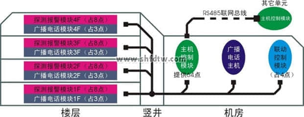 本系統(tǒng)通過(guò)目前主流消防系統(tǒng)中常用的各種火災(zāi)探測(cè)器(感溫型和感煙型)的參數(shù)變化來(lái)進(jìn)行火災(zāi)報(bào)警,并實(shí)現(xiàn)相關(guān)的聯(lián)動(dòng)控制。系統(tǒng)采用總線結(jié)構(gòu),采用帶聯(lián)動(dòng)功能的火災(zāi)報(bào)警控制器,配套消防電話系統(tǒng)及消防廣播系統(tǒng),可進(jìn)行消防報(bào)警及聯(lián)動(dòng)模擬、消防事故廣播、消防電話、地址編碼、編程設(shè)定等實(shí)踐項(xiàng)目。