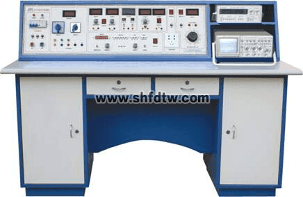 該實驗臺底下設有三相四線及“地”線(共五線)輸入接口,并配有漏電保護開關(guān)(電源總開關(guān)),三相指示燈,電壓換相開關(guān)、電壓表,電流表以監(jiān)督三相電源。