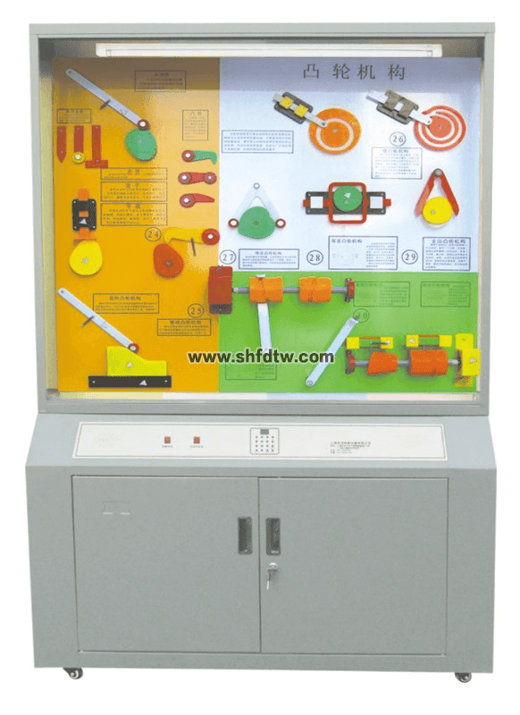 本公司新推出的機械原理示教陳列柜是根據(jù)大、中專院校、技校、職業(yè)學校的機械原理教學大綱設計的電化教學設備。天威公司推出的陳列柜設備共分十個柜和一個電腦控制臺,并配有一臺功率放大器,VCD機和激光片,聲控同步演示,采用新技術的單獨驅(qū)動由電腦或電子設備控制運轉(zhuǎn)演示,可由VCD控制順序自動運行講解;又能根據(jù)教材、教學需要而遙控任意選擇進行單獨演示。模型材料采用進口有機板;板面附有銀滌淪不干膠作必要的圖表和文字說明,演示形象真,運行可靠,制作工藝美觀,使用本陳列柜可提高教學效果,節(jié)約學時是一套現(xiàn)代化機械課程教學應用實驗室設備。