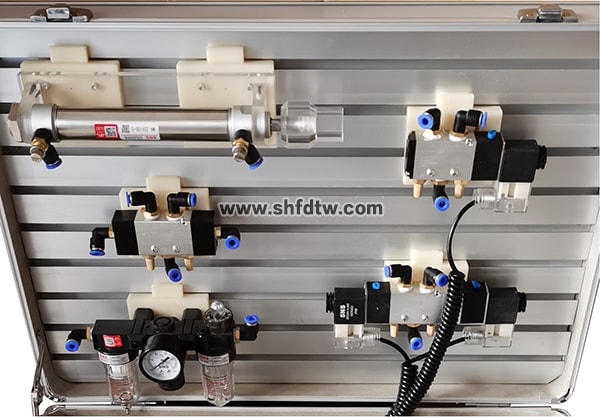氣動(dòng)實(shí)訓(xùn)元件均為工業(yè)型元件。掌握幾十種基本實(shí)訓(xùn)回路的工作過(guò)程及原理。實(shí)訓(xùn)回路組裝快捷、方便。簡(jiǎn)單實(shí)用。
