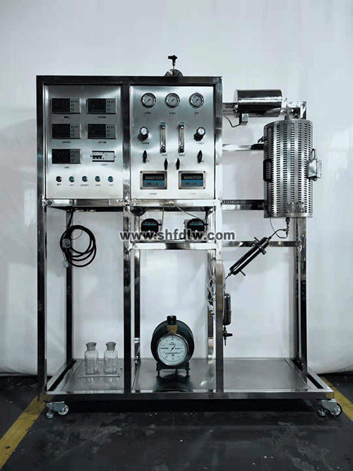 微型隔膜計(jì)量泵、氣體轉(zhuǎn)子流量計(jì)、混合器、汽化器、反應(yīng)器、氣液分離器、冷凝器、溫度儀表、壓力表、濕式氣體流量計(jì)、閥門、實(shí)驗(yàn)管道、不銹鋼框架及控制屏。 |