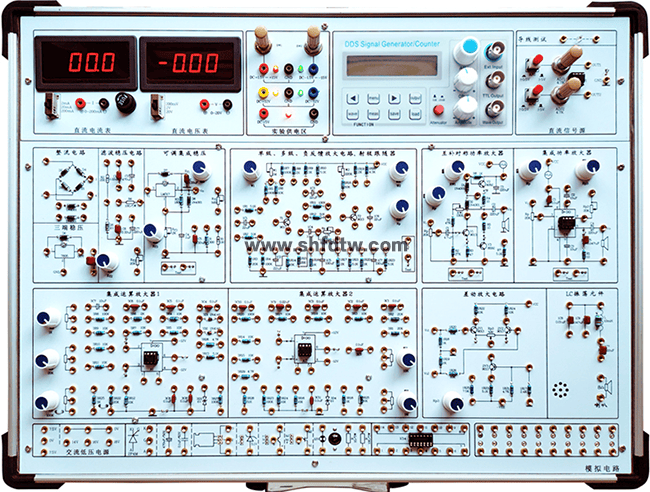 模擬電路實(shí)驗(yàn)箱由鋁木合金箱體、高性能線性電源、和實(shí)驗(yàn)電路板組成。其中實(shí)驗(yàn)電路采用固定功能模塊方式,電路原理和元器件符號(hào)清晰,實(shí)驗(yàn)用元器件可以焊裝在線路板的反面,安全可靠,不易損壞,也可以裝在線路板的正面,元件直觀可見(jiàn),感性認(rèn)識(shí)強(qiáng),正面還有實(shí)驗(yàn)電路原理圖,使學(xué)生在實(shí)驗(yàn)時(shí)對(duì)原理一目了然。