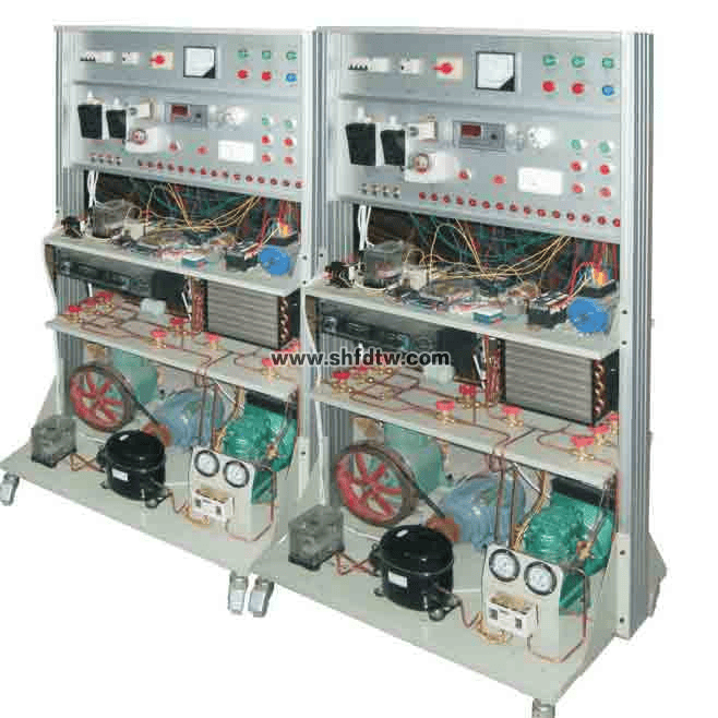 三種制冷壓縮機(jī)比較實訓(xùn)裝置 包括制冷器、空調(diào)電控、壓縮機(jī)、電機(jī)的操作、使用和接線以及基本電器零件的安裝。該裝置采用真實的工業(yè)零件,通過特定方式安裝在樹脂玻璃面板上。配有標(biāo)準(zhǔn)附件和打印的操作手冊。規(guī)格交流電和制冷控制低壓恒溫器,220-240伏交流,恒溫器,電子,恒溫器,低壓控制器,高壓控制器,風(fēng)扇控制開關(guān)電扇(用于干燥器或冷凝器),油壓開關(guān),電熱排序器、電磁閥,除霜周期定時器,220-240伏交流電,復(fù)合壓力計、低端、壓力計、高端、逆循環(huán)電磁閥、水泵循環(huán)控制器帶延時裝置。壓縮機(jī)和制冷零部件。公稱馬力:密封壓縮機(jī)一1匹,半密封壓縮機(jī)一1匹,開口壓縮機(jī)一1匹操作單元包括一個干燥器、冷凝器、過濾器/干燥器、干燥器和冷凝器風(fēng)扇、壓縮機(jī)接口