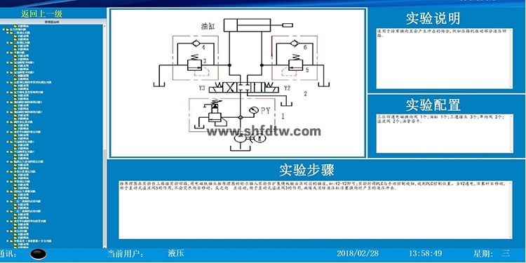 3、液壓回路組態(tài)畫面演示及控制實驗;