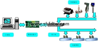 實驗臺的計算機控制測試系統(tǒng)由計算機、數(shù)據(jù)采集卡、接口板、傳感器和電磁閥等組成,如圖1所示。