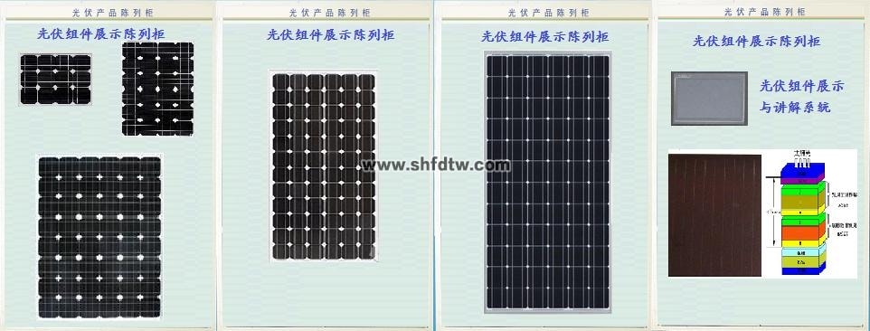 1.設(shè)備組成:(1)太陽能光伏硅材料展示柜;(2)太陽能光伏電池片展示柜;(3)太陽能光伏組件展示臺;(4)太陽能光伏組件附屬材料展示柜;(5)太陽能光伏應(yīng)用產(chǎn)品展示柜.