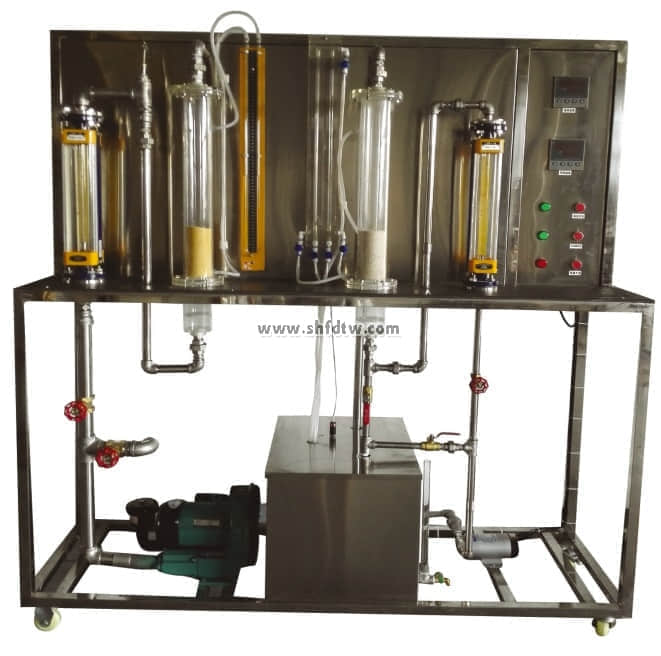 該裝置的工作原理是:當氣體以較低流速通過床層時,顆粒處于固定床狀態(tài);隨著氣速增大,床層壓降逐漸增加;當氣速達到最小流化速度時,床層開始膨脹,顆粒呈現(xiàn)流化狀態(tài);繼續(xù)增大氣速,床層高度進一步增加,最終可能進入氣流輸送狀態(tài)。通過調節(jié)氣體流量,可以觀察到這些不同狀態(tài)的轉變過程。
