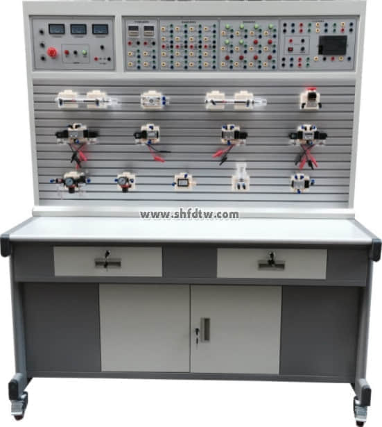 (3)配有控制模塊:電源模塊,PLC控制模塊,繼電器控制模塊,控制按鈕模塊,氣動元件獨立模塊等。