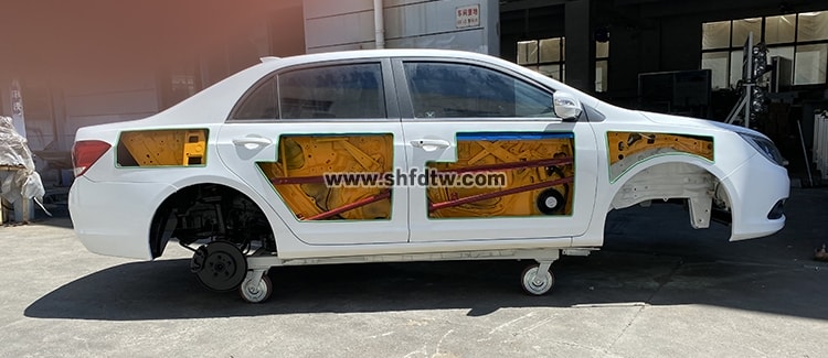 4.車身安裝有真實(shí)可運(yùn)行的原車車身電器低壓系統(tǒng)(包括燈光、中控門鎖、電動(dòng)車窗、電動(dòng)后視鏡、音響等),展示車身電器低壓系統(tǒng)的結(jié)構(gòu)與原理、動(dòng)態(tài)演示車身電器低壓系統(tǒng)工作過程。