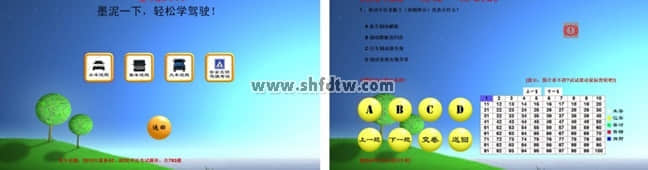 軟件全部采用三維設(shè)計(jì),所有的選擇界面和道路訓(xùn)練場(chǎng)景全部采用三維設(shè)計(jì)、制作和繪制。