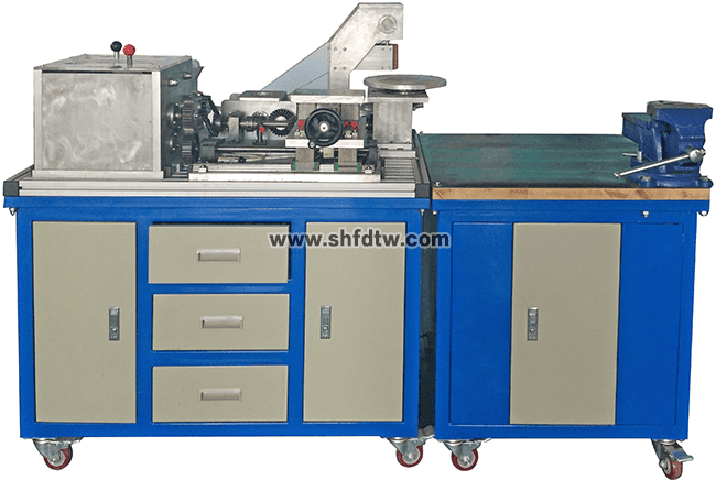 本裝置主要由實訓(xùn)臺、動力源、機械裝調(diào)對象(機械傳動機構(gòu)、多級變速箱、二維工作臺、間歇回轉(zhuǎn)工作臺、沖床機構(gòu)等)鉗工常用工具、量具等部分組成。