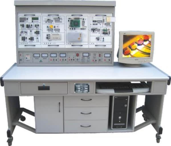 本裝置由控制屏、實(shí)驗(yàn)掛箱、實(shí)驗(yàn)桌組成,通過本實(shí)驗(yàn)臺可完成單片機(jī)的接口擴(kuò)展、數(shù)據(jù)采集、數(shù)據(jù)顯示、鍵盤控制、定時器、打印機(jī)接口等實(shí)驗(yàn),配備有仿真器。