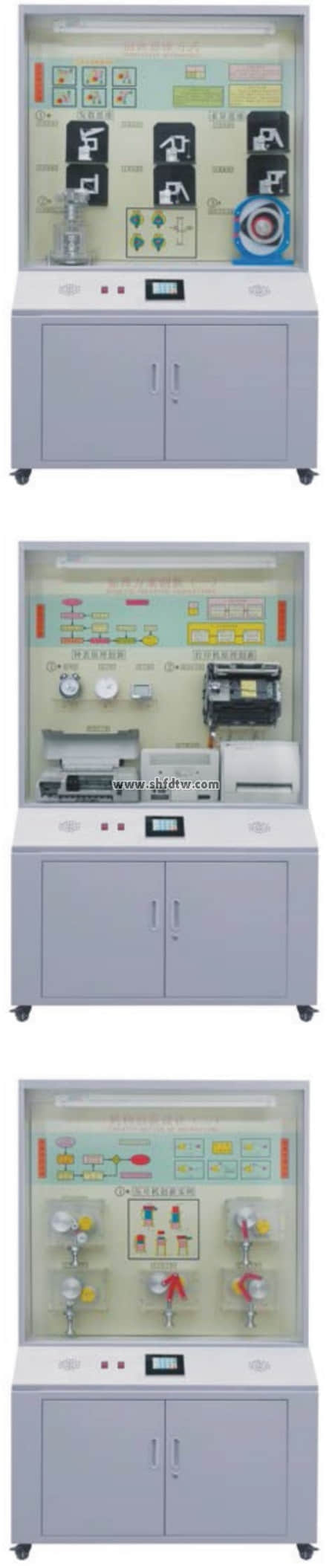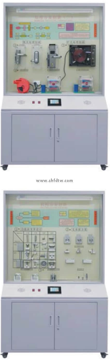 5、柜頂部裝有照明日光燈,柜背設(shè)有對開門,有利維護(hù)設(shè)備和方便維修。柜下部設(shè)有柜箱,方便存放單個(gè)模型、實(shí)驗(yàn)箱及相關(guān)實(shí)驗(yàn)文檔。柜底裝有萬向輪,方便移動(dòng),符合人機(jī)工程要求。