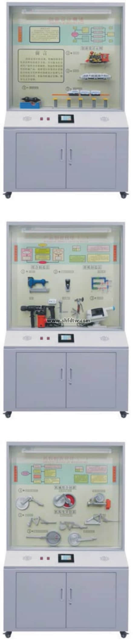 本陳列柜按國際標(biāo)準(zhǔn)流行設(shè)計(jì),采用各種新穎機(jī)電產(chǎn)品外,其余模型全部用鋁合金和有機(jī)玻璃等制作,每柜進(jìn)行彩噴圖文說明,介紹機(jī)械創(chuàng)新設(shè)計(jì)的基本原理與方法,對提高機(jī)械創(chuàng)新意識與創(chuàng)新設(shè)計(jì)能力具有重大作用。是機(jī)械創(chuàng)新實(shí)驗(yàn)室內(nèi)主要教學(xué)設(shè)備。