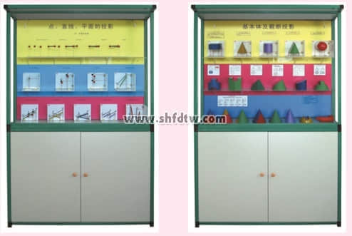 本套陳列柜采用121件動(dòng)畫圖象配合陳列柜上的內(nèi)容在電腦上演示各種模型特點(diǎn),如制圖工具的使用、投影產(chǎn)生過程、投影作圖步驟、裝配功能等、生動(dòng)形象。