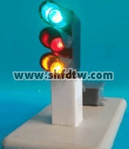 模型信號機(jī)按實(shí)物信號機(jī)比例縮小制作,采用LED發(fā)光光源,使用壽命達(dá)到3年以上,三個(gè)燈位每一路均可單獨(dú)控制,也可以根據(jù)需要全部點(diǎn)亮。