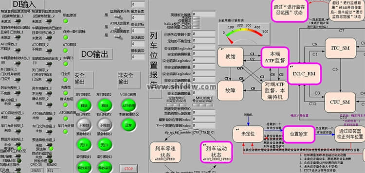 車載仿真系統(tǒng)具備和主流城市軌道交通線路所使用的相同的人機(jī)交互界面HMI和功能近似的車載ATP設(shè)備仿真器、車載ATO設(shè)備仿真器設(shè)備。列車模擬駕駛實(shí)訓(xùn)器能夠模擬城市軌道交通車載信號系統(tǒng)真實(shí)外部傳感器環(huán)境和車輛接口環(huán)境,能夠仿真模擬司機(jī)駕駛臺指示燈、按鈕、開關(guān)、司控器,能提供逼真的人機(jī)交互界面HMI向駕駛員實(shí)時(shí)反饋列車狀態(tài)信息,能夠?qū)崿F(xiàn)自動列車超速防護(hù)、自動駕駛、站臺自動精確停車等功能。