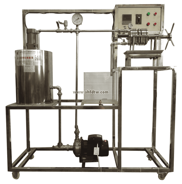 4、該實(shí)驗(yàn)裝置是由過(guò)濾板、過(guò)濾框組成的小型工業(yè)用不銹鋼板框過(guò)濾機(jī),能完整地體現(xiàn)了板框壓濾機(jī)的構(gòu)造和操作流程,采用高壓漿料泵將物料注入過(guò)濾機(jī),工程化概念強(qiáng)。