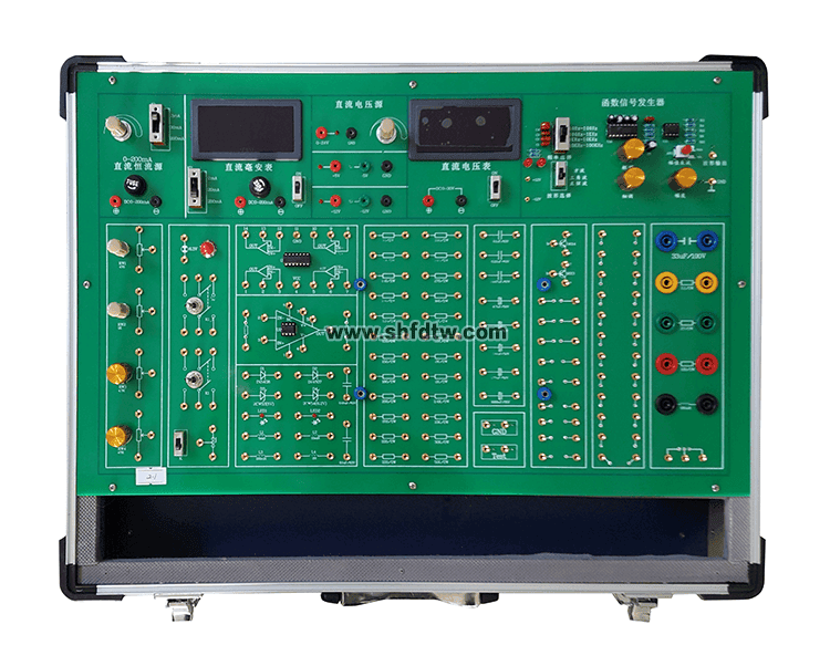 本實(shí)驗(yàn)箱以全開放的形式設(shè)計(jì),板上集成有實(shí)驗(yàn)用各種元器件,實(shí)驗(yàn)時(shí)學(xué)生自行選擇元器件,自行搭接實(shí)驗(yàn)電路,實(shí)驗(yàn)連接采用鎖緊疊插式鍍金插頭和插座,接觸可靠。電路板采用2.0厚雙面敷銅板設(shè)計(jì)工藝,堅(jiān)固實(shí)用,使用壽命長。