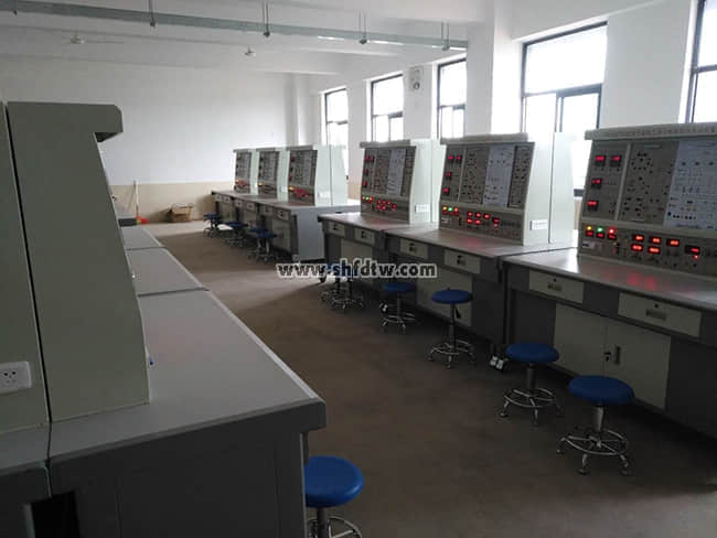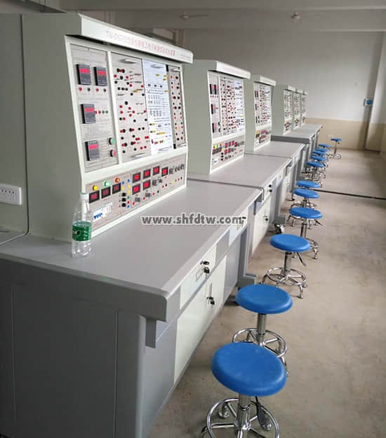 1、實(shí)驗(yàn)桌:全鋼結(jié)構(gòu),鋼質(zhì)噴塑,耐磨防火面板,設(shè)有抽屜、柜子用于存放工具、配件等。