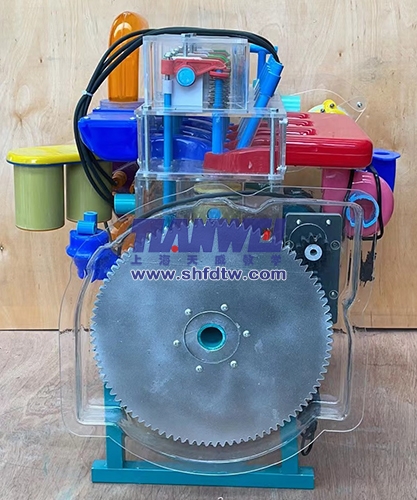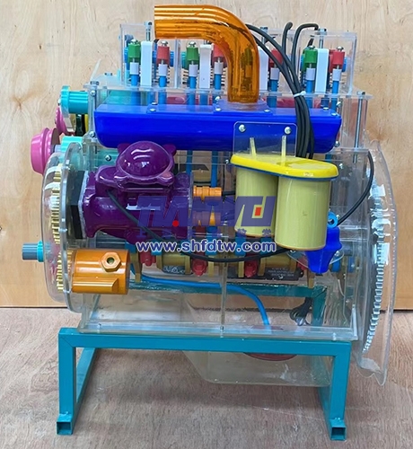 本品選用透明有機玻璃制作,內(nèi)中部件均以硬質(zhì)塑料料加工。各部分都以壓模成形加工,代替過去膠粘合的方法,使產(chǎn)品在強度上有很大提高。發(fā)動機總成用電機驅(qū),能演示發(fā)動機轉(zhuǎn)速高低。