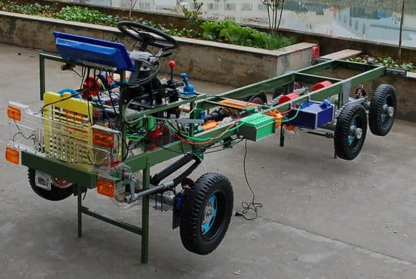本品選用透明有機(jī)玻璃制作,內(nèi)中部件均以硬質(zhì)塑料料加工,用螺絲固定在金屬高溫烘漆而成的車(chē)架上。各總成部分都以壓模成形加工,代替過(guò)去膠粘合的方法,使產(chǎn)品在強(qiáng)度上有很大提高。發(fā)動(dòng)機(jī)總成用電機(jī)驅(qū)動(dòng),在油門(mén)處設(shè)有調(diào)速裝置,能演示發(fā)動(dòng)機(jī)轉(zhuǎn)速高低。離合器分離明顯,操縱靈活,離合器外殼整體壓模而成,變速箱和各檔齒輪用各種顏色表示,換檔靈活,手制動(dòng)美觀。后橋外形壓模而成,內(nèi)中主減速、差速轉(zhuǎn)動(dòng)自如,輪轂剎蹄壓模成型,剎蹄可調(diào)節(jié),前橋輪鼓可調(diào)整,轉(zhuǎn)向裝置以及電瓶、油箱、水箱,制動(dòng)管路分布清楚一目了然。電路采用對(duì)插件前后分布,燈架、風(fēng)窗、儀表板、后燈架用透明有機(jī)玻璃壓模成整體美觀逼真。