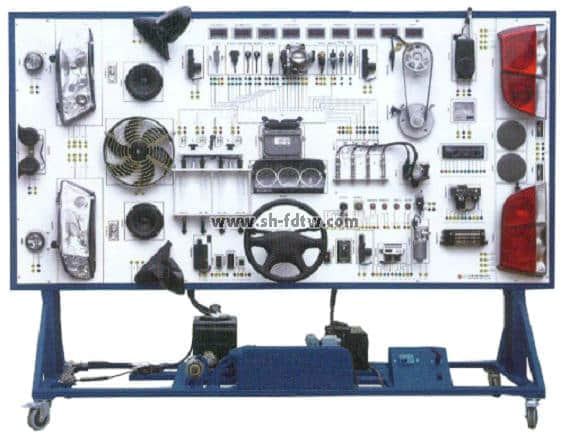 燈光系統(tǒng)、儀表系統(tǒng)、點(diǎn)火與噴射系統(tǒng)、起動(dòng)系統(tǒng)、充電系統(tǒng)、發(fā)動(dòng)機(jī)電控系統(tǒng)、喇叭系統(tǒng)、電動(dòng)車窗系統(tǒng)、電控門鎖及后視鏡系統(tǒng)、雨刮系統(tǒng)、音響系統(tǒng)、故障設(shè)置系統(tǒng)、移動(dòng)臺(tái)架等。