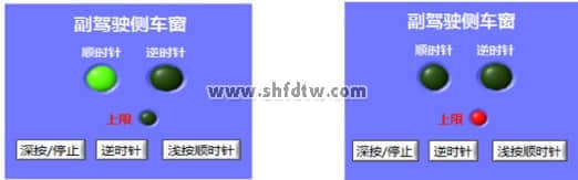 彩屏附帶LED燈板,指示CAN網(wǎng)絡(luò)的運行的狀態(tài), LED燈指示的信息主要有副駕駛室車窗,左后車窗,右后車窗。后視鏡,門鎖等狀態(tài)