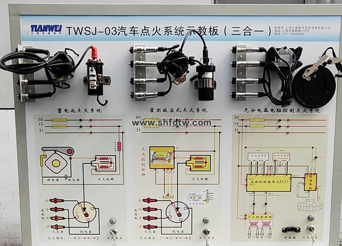 本產(chǎn)品選用汽車三種點火系統(tǒng)實物,展示汽車點火系統(tǒng)的結(jié)構(gòu)與原理;面板上繪有三種完整的點火系統(tǒng)的電路圖,設(shè)置有檢測端子,可通過儀器儀表檢測各種信號參數(shù)如電壓、電阻、頻率等。本示教板功能齊全、操作方便、安全可靠。