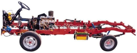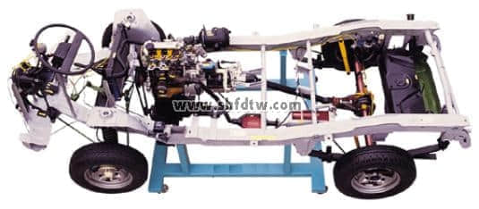該設備采用汽車底盤各系統(tǒng)(拆卸車外殼)為基礎,充分展示汽車底盤各系統(tǒng)的組成結構。