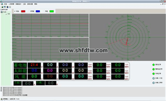 ◆ 顯示內(nèi)容:蓄電池電壓、風機電壓、光伏電壓、風機電流、光伏電流、風機功率、光伏功率,能量模擬圖,當前風速(米/秒),當前風向(度),當前風力資源平估。