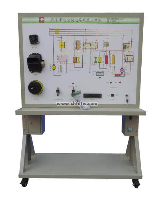 該設(shè)備采用 解放CA1121 汽車手動(dòng)空調(diào)電路系統(tǒng)實(shí)物為基礎(chǔ),充分展示汽車手動(dòng)空調(diào)電路系統(tǒng)的組成結(jié)構(gòu)和工作過程。