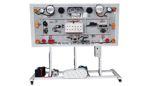 該設(shè)備采用 解放CA1121 原車柴油機(jī)電器實(shí)物為基礎(chǔ),充分展示汽車儀表系統(tǒng)、燈光系統(tǒng)、雨刮系統(tǒng)、喇叭系統(tǒng)、發(fā)動機(jī)電器系統(tǒng)、起動系統(tǒng)和充電系統(tǒng)等汽車電器各系統(tǒng)的組成結(jié)構(gòu)和工作過程。
