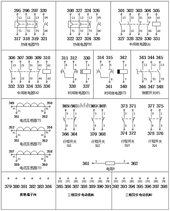 3、設(shè)備配置:本設(shè)備按標(biāo)準(zhǔn)電氣控制柜設(shè)計(jì)制作,安裝有完成各種電氣控制所需要的多種低壓電器,如:漏電斷路器、電壓表、電流表、按鈕、信號燈、熔斷器、報(bào)警裝置、電流互感器、接觸器、時(shí)間繼電器、中間繼電器、熱繼電器、行程開關(guān)、轉(zhuǎn)換開關(guān)、整流二極管、電動機(jī)等。內(nèi)含:三相電源開關(guān)(單、三相斷路器各1只)、熔斷器5只、交流接觸器3只;電動機(jī)1只、電流互感器3只、熱繼電器2只、中間繼電器2只、時(shí)間繼電器2只、行程開關(guān)4只、接線端子若干。