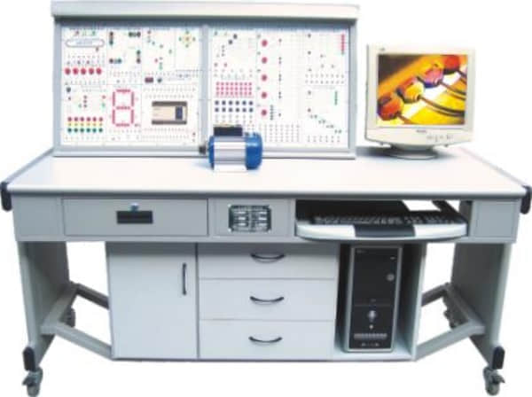 “TWSW-01A型可編程控制器實(shí)驗(yàn)裝置”是專為目前我國(guó)各院校開設(shè)的“可編程控制器技術(shù)”、“可編程控制器及其應(yīng)用”課程配套設(shè)計(jì)的??删庍壿嬁删庍壿嬁刂破鳌⑼ㄐ啪幊唐?、GXDeveloper7.0編程軟件、MCGSV5.5工控組態(tài)軟件、仿真教學(xué)軟件、模擬控制實(shí)驗(yàn)板、實(shí)物等于一體,可直觀地進(jìn)行PLC的基本指令練習(xí)、多個(gè)PLC應(yīng)用的模擬實(shí)驗(yàn)及實(shí)物實(shí)驗(yàn),可編程實(shí)驗(yàn)臺(tái)同時(shí)也為高層次的設(shè)計(jì)開發(fā)實(shí)驗(yàn)提供良好的條件。PLC教學(xué)實(shí)驗(yàn)裝置為了結(jié)合教學(xué)要求,設(shè)計(jì)過(guò)程中參考了國(guó)內(nèi)多種教材,從中精選出典型性的實(shí)驗(yàn)項(xiàng)目,另外還配套三相鼠籠異步電機(jī)。