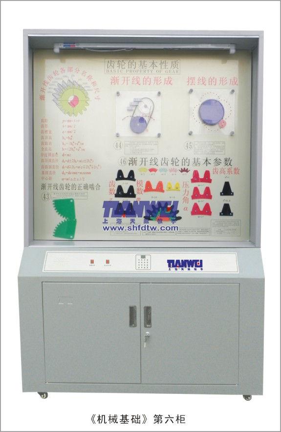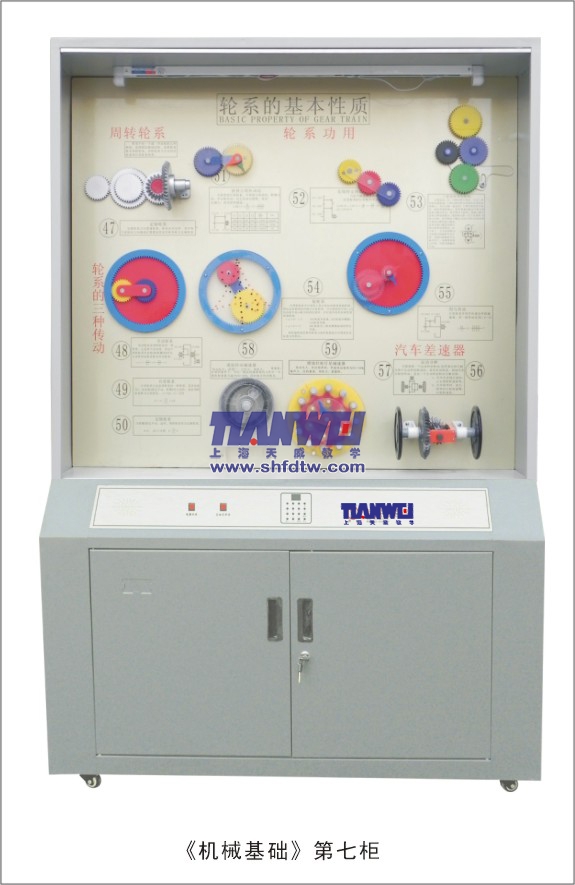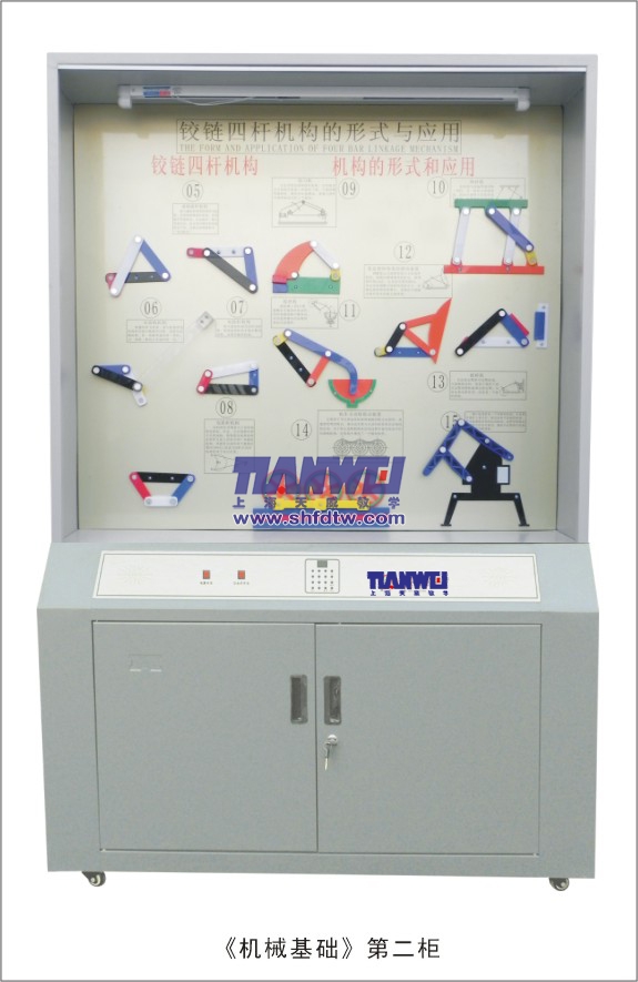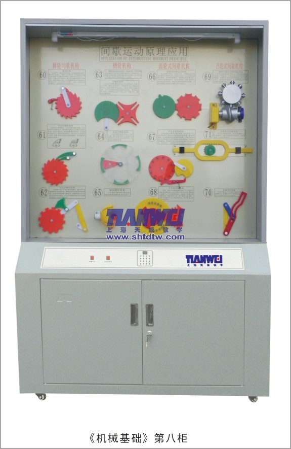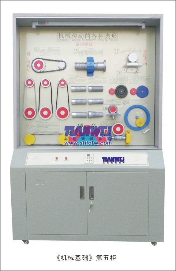 根據(jù)全國(guó)技工學(xué)校機(jī)械類通用教材《機(jī)械基礎(chǔ)》示教陳列柜是一套電化教學(xué)設(shè)備。本陳列柜共分十個(gè)柜,陳列柜通過機(jī)械模型或?qū)嵨?,配合相?yīng)的圖文資料,形象地展示與解說機(jī)械基礎(chǔ)的基本知識(shí),加強(qiáng)學(xué)生對(duì)通用機(jī)械基礎(chǔ)的類型、結(jié)構(gòu)特點(diǎn)及其設(shè)計(jì)的感性認(rèn)知,為進(jìn)一步學(xué)習(xí)機(jī)械基礎(chǔ)奠定基礎(chǔ)。