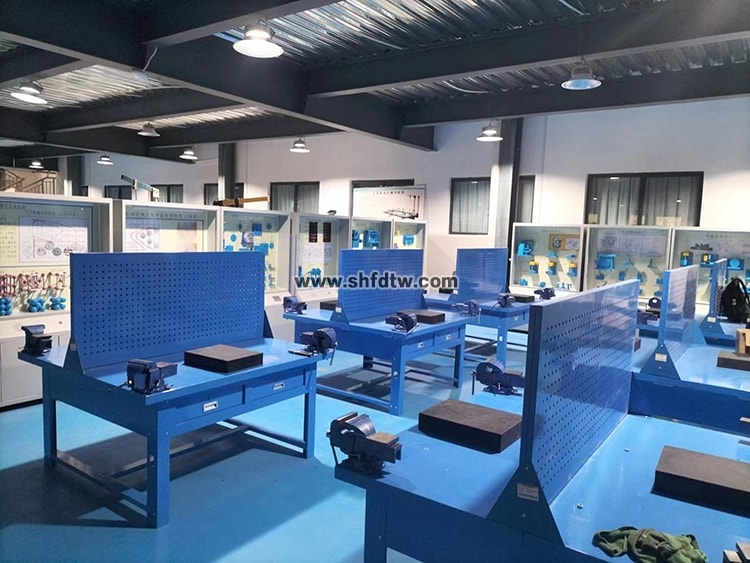本公司生產(chǎn)鉗工實驗室設(shè)備根據(jù)教學要求與多家工廠共同開發(fā)生產(chǎn),該產(chǎn)品配備的鉗工工具通用化,標準化和專用化,可提高學生的操作技術(shù)和動手能力。鉗工大多是在鉗工臺上用手工工具操作,對工件進行加工。手工操作的特點是技術(shù)性強,加工質(zhì)量的好壞主要取決于操作者技術(shù)水平的高低,它的工作范圍較廣,具有實用性和靈活性的優(yōu)勢且不受設(shè)備、場地等條件的限制,因此凡是采用機械加工方法不太適宜或難以進行機械加工的場合,通常由鉗工來完成,尤其是機械產(chǎn)品的裝配、調(diào)試、安裝和維修等更需要鉗工,所以說鉗工不僅是機械制造工廠中應用廣泛的工種之一,因此鉗工實驗室設(shè)備也是各大院校,技校不可缺少的實訓教學產(chǎn)品。