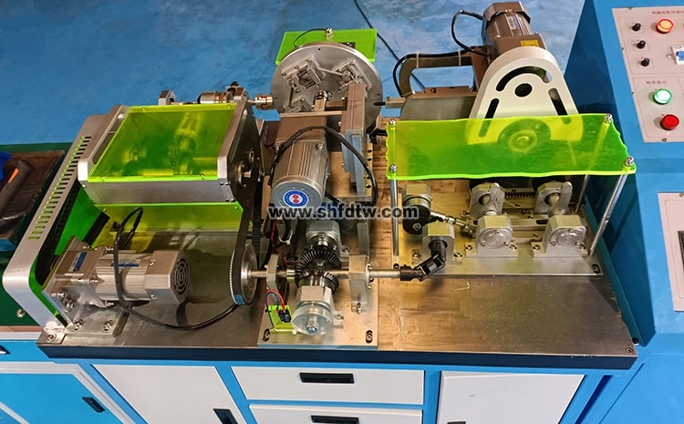 自動打標機模塊:主要由曲軸、軸瓦、圓錐滾子離合器、導向裝置、打擊頭、夾手、箱體、動力電機、軸承等組成,可對工件進行自動打標,打標頭可以自由更換??赏瓿勺詣哟驑藱C的裝配工藝及精度檢測實訓。
