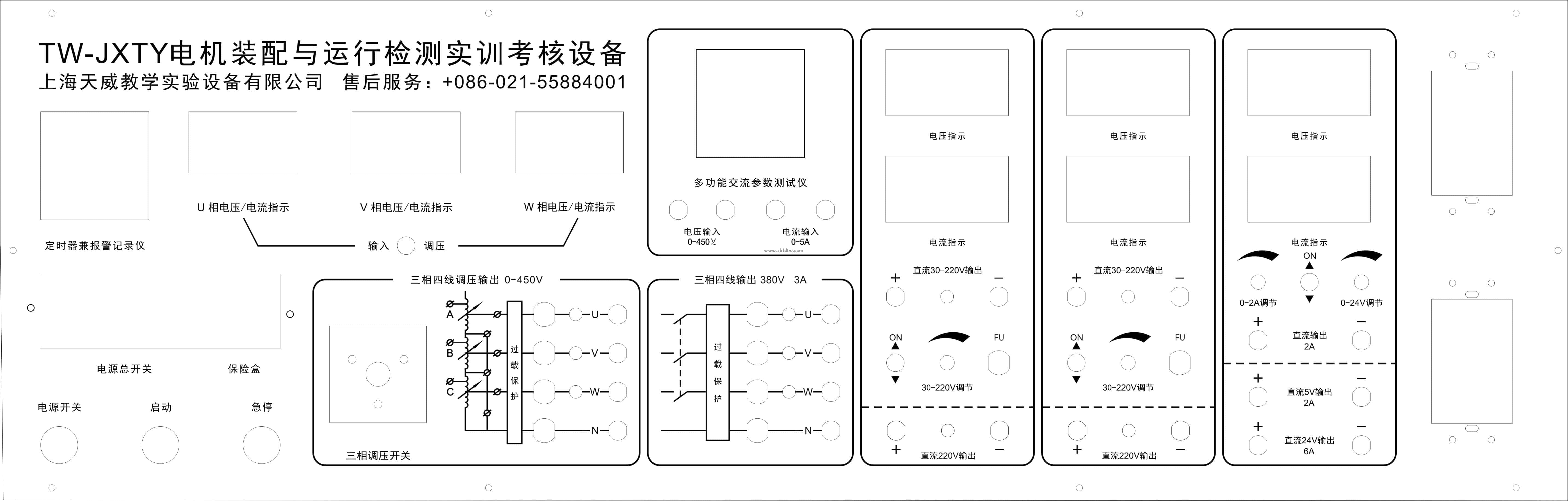 鋼結構,帶自鎖腳輪,作為測量、電源控制、電力拖動、驅(qū)動控制系統(tǒng)等電氣設備的安裝載體。 包括進線電源控制與保護、電壓表、電流表、電量綜合顯示儀表、轉(zhuǎn)速表、力矩表等基本儀表和交直流基本電源、指示燈、緊急停止按鈕、三相同軸調(diào)壓器等器件 |