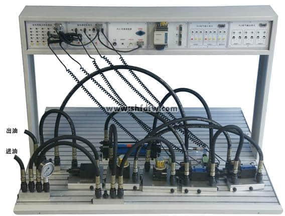 (6)利用此套實驗設備可獨立地進行液壓控制相應的基本回路及其應用實驗,以及 PLC編程及控制實驗;同時,也可綜合地進行相互配合的實驗:如實現電-液控制。