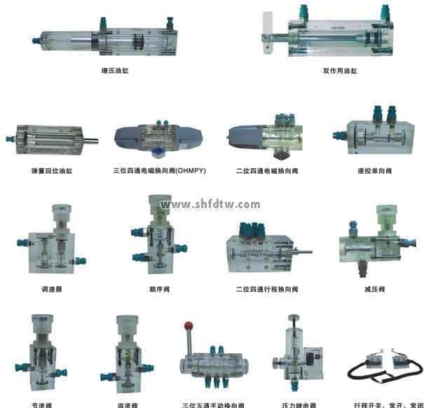 4、實(shí)訓(xùn)元件均為透明有機(jī)材料制成,便于了解掌握幾十種常用液壓元件的結(jié)構(gòu),性能及用途。掌握幾十種基本回路的工作原理,實(shí)訓(xùn)組裝回路快捷、方便。