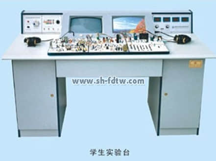 本裝置由實訓臺、實訓桌、顯像管箱、5.1聲道揚聲器系統(tǒng)和實訓組件五部分組成