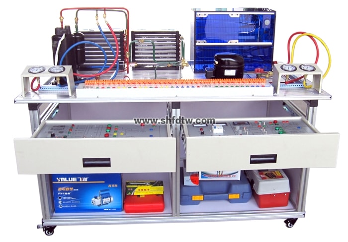 2.導(dǎo)軌式鋁合金安裝平臺由標準規(guī)格的鋁合金工業(yè)型材組成,作為學(xué)生操作訓(xùn)練的平臺,上面安裝有空調(diào)系統(tǒng)部件和冰箱系統(tǒng)部件。