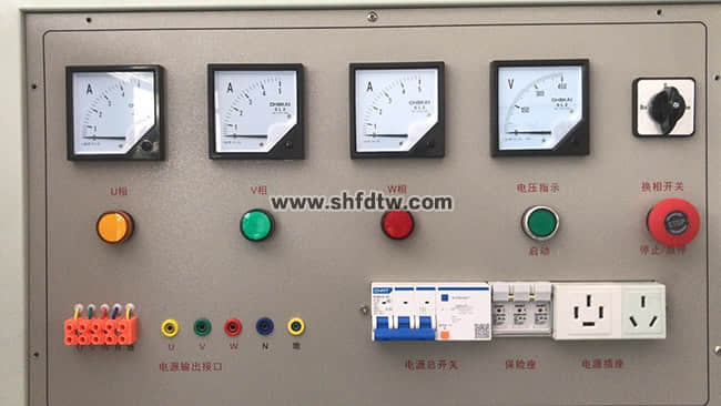 上端電源控制區(qū):(主要是空開、電源指示燈、電壓表、電流表等)