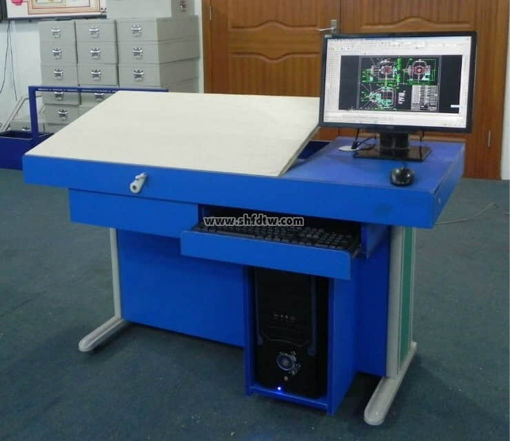 高級(jí)多媒體工程制圖設(shè)計(jì)實(shí)驗(yàn)室設(shè)備是利用“四桿演變機(jī)構(gòu)”進(jìn)行升降,實(shí)現(xiàn)快速、無(wú)級(jí)調(diào)節(jié)圖板的傾斜角度。該機(jī)構(gòu)的框架由不銹鋼方管氬焊而成,傳動(dòng)部分采用模具成型或機(jī)加工電鍍件。它具有傳動(dòng)靈活、使用方便、美觀堅(jiān)固等特點(diǎn)。本套設(shè)備適用于各類大中專院校、技校及職業(yè)高校的制圖課程教學(xué)及課程設(shè)計(jì)和畢業(yè)設(shè)計(jì)。