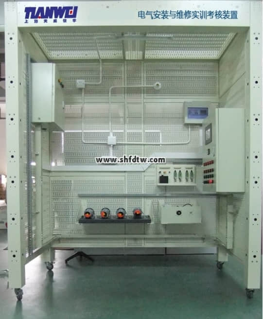 TWDAX-02電氣安裝與維修實(shí)訓(xùn)考核裝置 本套實(shí)訓(xùn)裝置需采用鋼制網(wǎng)孔板和鋁合金型材組成基礎(chǔ)架構(gòu),可快速安裝木磚,按較真實(shí)的反映施工現(xiàn)場(chǎng)。配備有專用電源控制柜,施工工具線路與學(xué)生電源操作線路分離,在控制電路電源的緊急停止及多路安全保護(hù)措施使設(shè)備需具有
